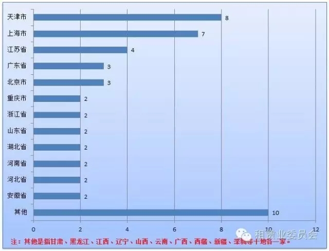 已成立的49家金融租賃公司中,天津和上海最多,分別為8家、7家。
