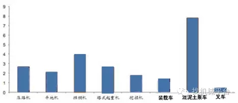 2015年工程機械的設備的租賃利用率相對排名與2012年類似,在主要的工程機械品種中,利用率排名靠前的為使用頻率較低并且月租金相對較高的混泥土泵車和塔式起重機。不過需要特別指出的是,2015年工程機械租賃整體利用率下滑明顯,之前租賃利用率較高的品種如塔式起重機2015年的利用率估計只有50%-55%,挖掘機的租賃利用率甚至下降到不足30%。我們認為,在現行的經濟環境下,行業依然可以通過提高租賃服務的水平來提高利用率。