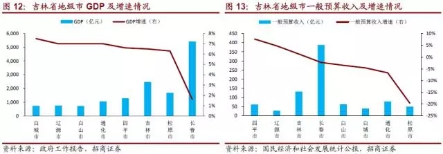 吉林省的8個地級市中,2015年GDP總量排前三的為長春市、吉林市、松原市,且GDP總量均在1500億以上,排后三位的是遼源市、白城市、白山市,GDP總量均低于800億。GDP增速除長春市(1.6%)外,其他地級市都在6%以上。