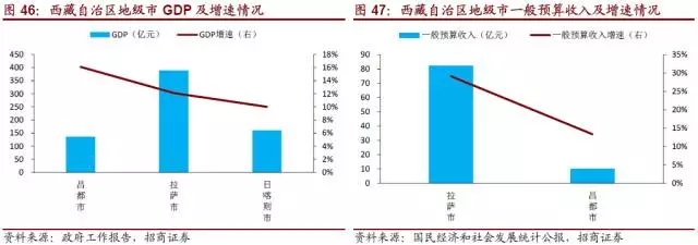 拉薩市、昌都市一般預算收入總量為82.4億和10.2億,增幅分別為29.1%和13.3%。