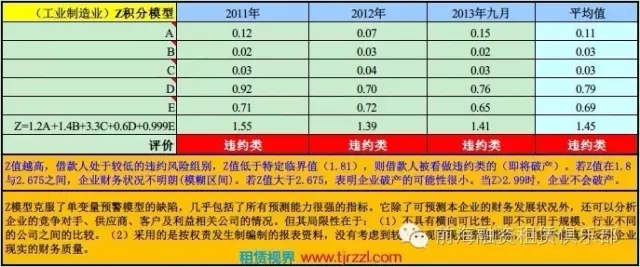 示例:某融資租賃公司判別承租人破產風險適用的Z評分模型