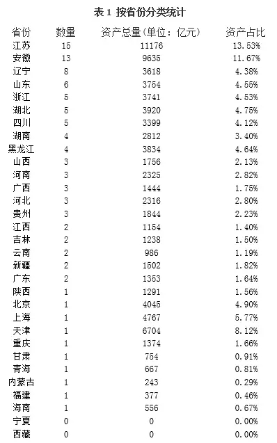4、地區分化占比失衡。根據進入中國城投公司百強(總資產)榜單分析,進入百強的城投公司,其中江蘇省入選企業15家,為所有省份之最。安徽、山東、湖北、遼寧、浙江、四川等省入榜企業都超過5家,東南沿海、西北地區省份整體實力偏弱,而寧夏、西藏等省級行政區域則無企業入選。