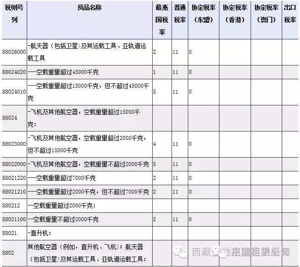 我國對大飛機的進口實行鼓勵政策,空載重量在45噸以上的大飛機適用1%的優惠稅率。詳見以下海關總署網站截圖: