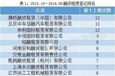 統計顯示,2015.10—2016.09融資租賃累計登記數為12.3萬,占總登記數的30.60%。