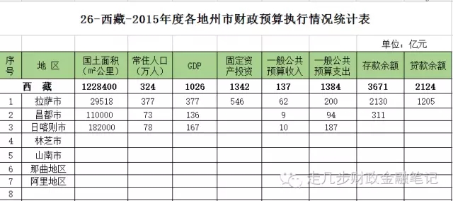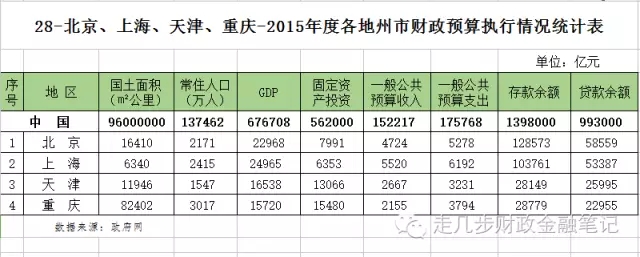 原標題:2015年度全國各地州市政府投資、預算執行、金融運行情況概覽(匯總)