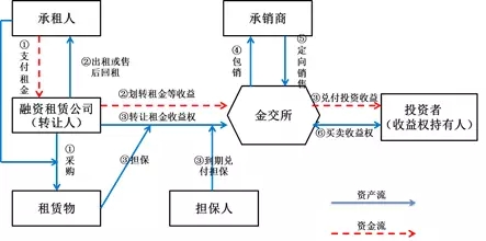 (3)融資租賃公司將享有的對承租人的租金收益權轉讓給金交所,并以租賃物或第三人擔保的方式提供擔保;