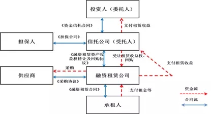 (1)投資人將資金交付給信托公司,并簽訂《資金信托合同》,信托公司將募集的信托資金用于受讓融租公司的租賃資產收益權;