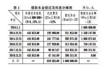 例:出租人甲公司在2014年1月1日以200萬元的價格購入設備一臺,該設備經濟壽命約為5年,預計凈殘值為零。甲公司為購入該設備,向銀行借入資金160萬元,借款利率為12%,并于每年年末等額支付本息443 853元。銀行對甲公司無追索權。甲公司享受設備成本10%的政府補助,并可采用加速折舊法計提折舊,折舊方法為年數總和法。假定所得稅稅率為25%。