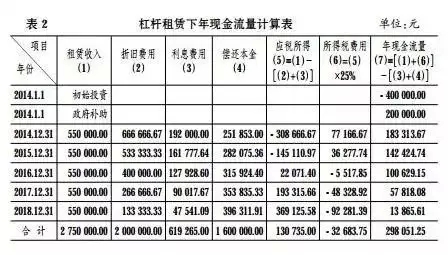 在整個租賃期內,未實現融資收益借貸方發生額均為330 735.00元,在租賃期內按照年現金流量進度分配完畢。遞延所得稅負債借貸方發生額均為138 885.44元。通過運用多階段法進行分配,使得各年確認的租賃投資稅前收益和政府補助收益與年現金流量基本同步。