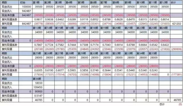 計算原理:按照月利息率將每月現金凈流量折現,折算到當前時點總資金凈流量=0的折現率即為該項目內含實際利率(即實際資金成本),具體見下表: