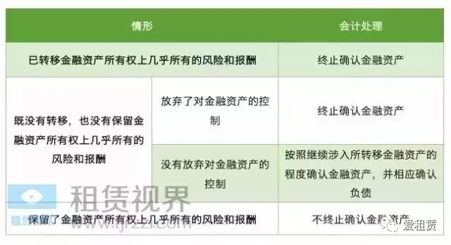 根據會計準則,如果作為發起人的租賃公司已將租金資產所有權上幾乎所有的風險和報 酬轉移給 SPV,可以實現出表;如果租賃公司保留了租金資產所有權上幾乎所有風險 和報酬的,則未放棄租金資產控制權,不能出表;如果租賃公司既沒有轉移也沒有保留 租金資產所有權上幾乎所有的風險和報酬,應當按照繼續涉入所轉移租金資產程度確認 有關租金資產,繼續涉入部分不能出表,不過國內和國際會計準則均沒有明確規定“幾 乎所有”的比例,一般會計界在相關討論中將“幾乎所有”理解為“95%左右的比例”。 在大部分資產證券化案例中,發起機構一般通過持有次級檔證券繼續涉入所轉讓金融 資產的一部分。