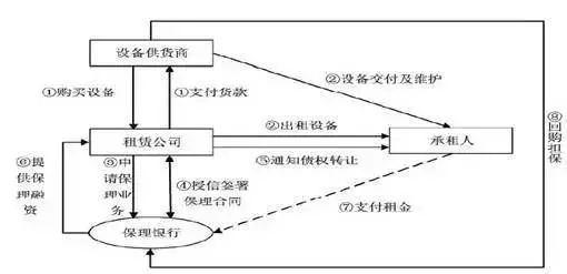 4.保理擔保:由承租人自身或者供應商、其他第三方提供保證或物權擔保,在有追索權的情形下,向銀行回購銀行未收回的融資款;