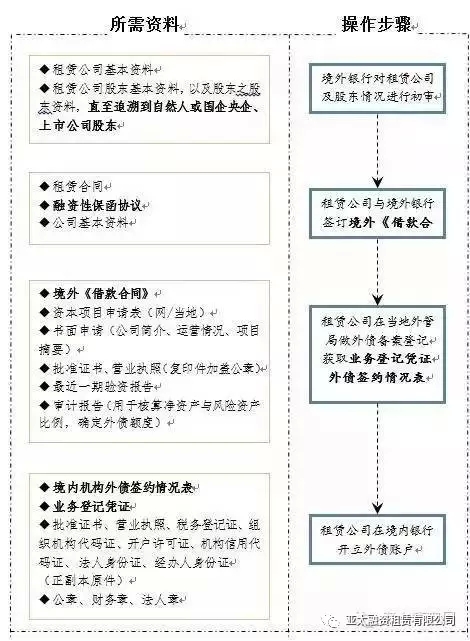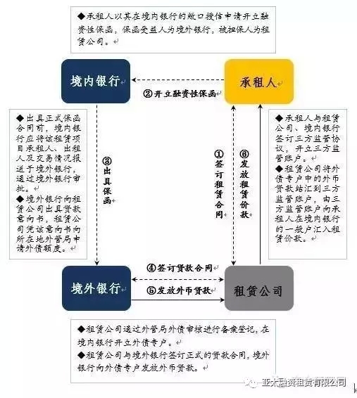 (備注:因租賃外債業務需向租賃公司所在地外管局備案登記,故需要承租人提供有形動產作為租賃標的物配合此次租賃業務,流程中以承租人提供的資產設備作為標的物。)