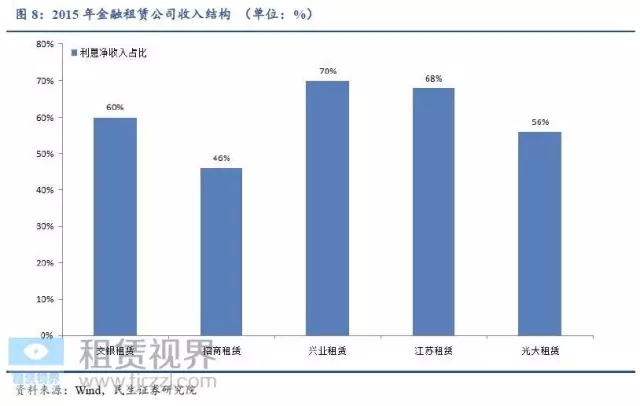 從收入結構上看,目前金融租賃公司的收入以利息收入為主,手續費和傭金收入為輔。近年來,隨著金融租賃行業的轉型升級,金融租賃公司的非利息收入逐步上升,目前非利息收入占比平均為40%,高于銀行業的非利息收入占比。
