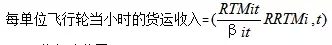 和客運收入類似,對航空公司來說,貨運也是很大的收入來源。許多專注于客運運輸的寬體飛機在裝完乘客行李后,還能容納大量貨物。貨物收入的多少建立在飛機機型、飛機的腹艙容量、目的地、最大的起飛重量和其他因素之上。與完全成熟的貨運航空公司不同,客運航空公司傾向于建立貨運部門來處理上也貨物業務。隨著物流交付的優化在商業領域的廣泛應用,對飛機貨物運輸的需求也一直在增長。然而,旅客交付行李的額外收費不作為貨運收入,作為航空公司輔業收入。為了計算貨運收入,必須考慮收入噸英里(RTM)、飛行輪當時間和收入噸英里的收入(RRTM):