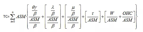 以上公式中,間接成本以i/ASM表示,從而得到單位值: