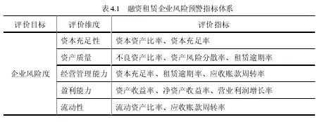 根據上文對融資租賃風險類型、風險形成原因的分析,并通過對風險預警指標的選擇,提煉出融資租賃企業風險預警指標體系: