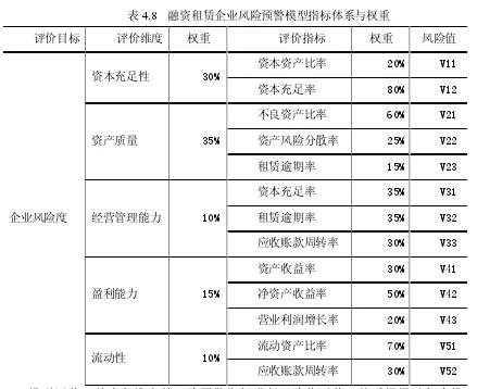 根據上文對融資租賃企業風險指標選擇與指標賦權,可構建融資租賃企業風險預警模型: