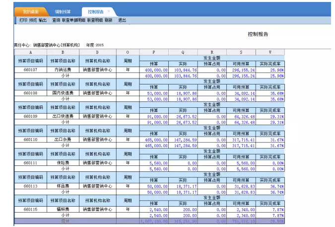借助ERP平臺,實時對預算項目進行控制、實時查詢各部門預算執行情況。