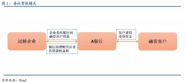委托貸款通道模式:通道業務最終的客戶是一些受宏觀調控控制或過剩行業的企業,這些企業難通過正常的貸款流程在銀行貸到款。委托貸款的模式是過橋企業委托銀行向需要融資的銀行客戶發放委托貸款,銀行用理財資金從過橋企業受讓這筆委托貸款的受益權。