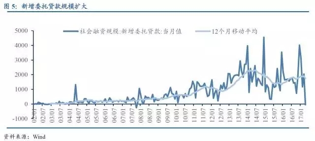 填補長期剛性融資需求的空缺。地方政府融資平臺及房地產投資規模的迅速擴張,從而形成對銀行信貸和其他融資方式的巨大需求。基建投資項目一旦開工,后續融資需求具有很強的剛性,銀行貸款規模受到嚴格限制后,就通過理財、信托、同業、委托貸款等各類通道業務來滿足剛性的融資需求。