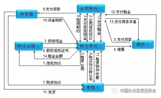 在物主出租人通過信托活動的情況下,受托人將被指定為信托的代表人,也稱為物主受托人,通常是商業銀行或信托公司。其主要責任是監督產權參與人的權利,并按預定協議對各產權參與人分配和支付租賃資金。